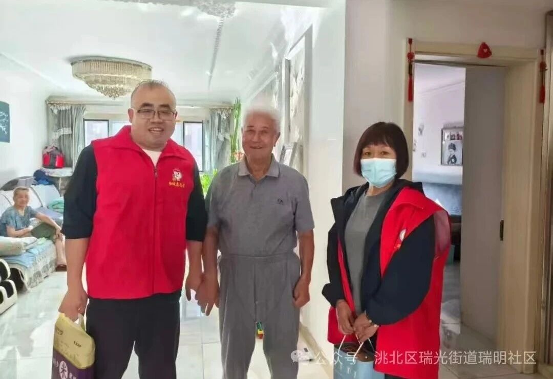 瑞光街道瑞明社区新时代文明实践站开展“双节送关怀·党恩暖人心”走访慰问活动,为老党员和困难群众送去米面油等慰问品。工作人员与慰问对象促膝谈心,倾听建议、解决难题,老党员们分享的人生感悟也为社区治理提供了宝贵经验。