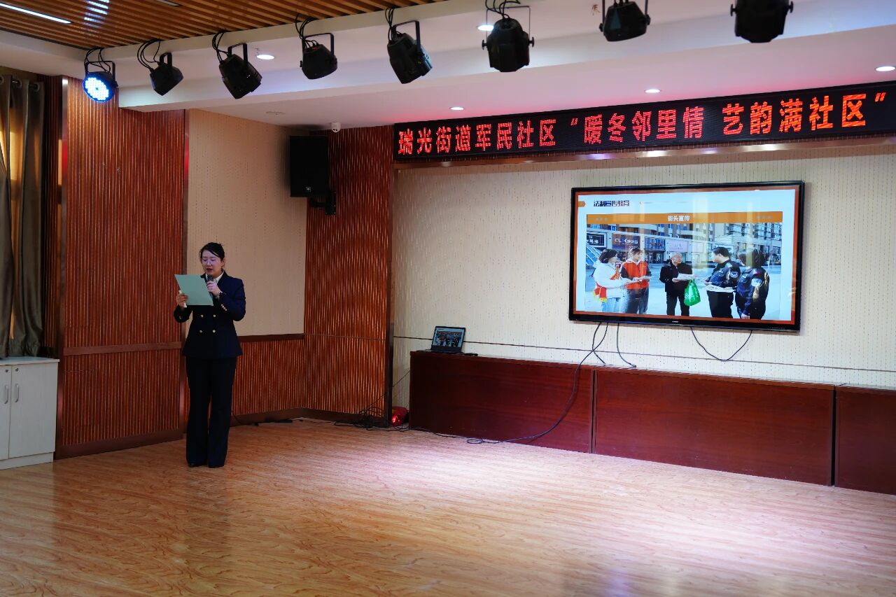 冬日寒意浓,邻里情更暖。1月13日,瑞光街道军民社区新时代文明实践站热闹非凡,“暖冬邻里情·艺韵满社区”文艺汇演温情启幕。这场精心筹备的文化盛宴,以多元艺术串联邻里情谊,用欢声笑语驱散冬日寒凉,让文明新风润物无声浸润人心。