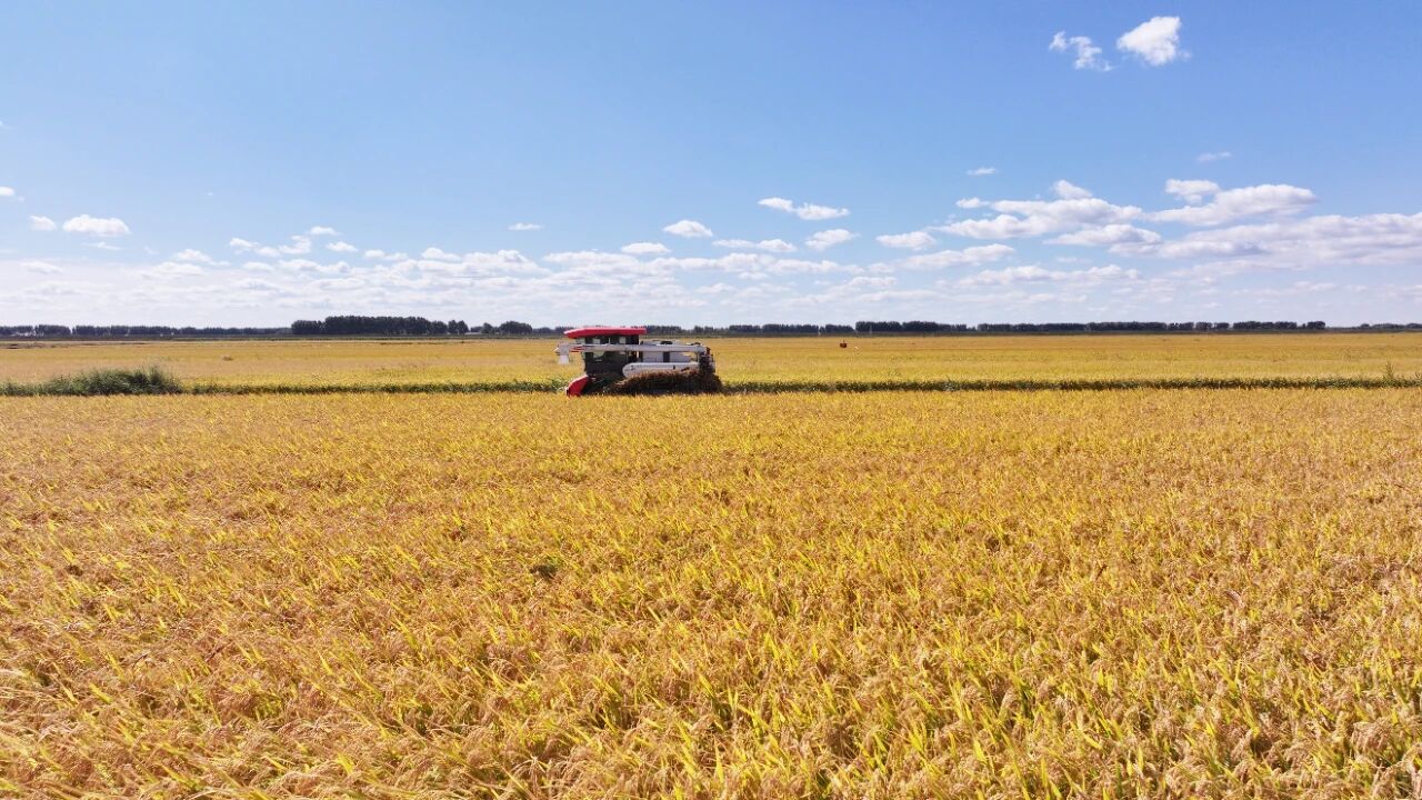 德顺蒙古族乡十家子村也同样迎来了丰收。连片稻田如同金色的海洋,收割机如同 “领航者” 般穿梭,所到之处,沉甸甸的稻穗被整齐切割、卷入机身,饱满的稻粒不断注入随行车辆,田间地头一派繁忙有序的丰收景象。