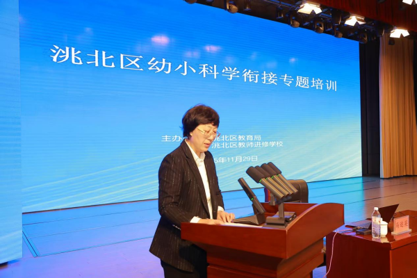 为深入贯彻落实《教育部关于大力推进幼儿园与小学科学衔接的指导意见》精神,推动全区幼小衔接工作科学化、规范化开展,11月29日上午,洮北区教育局联合区教师进修学校在白城医高专图书馆报告厅举办幼小科学衔接专题培训。全区各公民办幼儿园及小学600余名教育工作者参加了本次活动,区教育局副局长吕春生、孙喜博,区教师进修学校校长王娜出席。区教师进修学校副校长高敬华主持了本次培训。