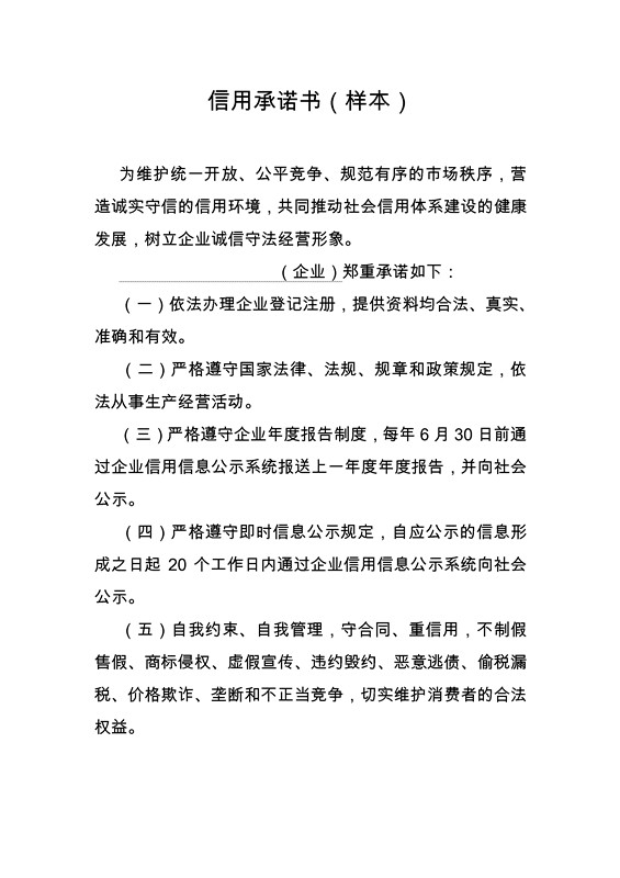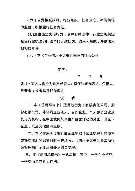 承诺书样本